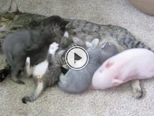 Baby pot-bellied pig infiltrates his way into a cat family… and your heart (Video) by: Ben Jul 12, 2016 07/12/16 0 Liked! 0 Disliked 0