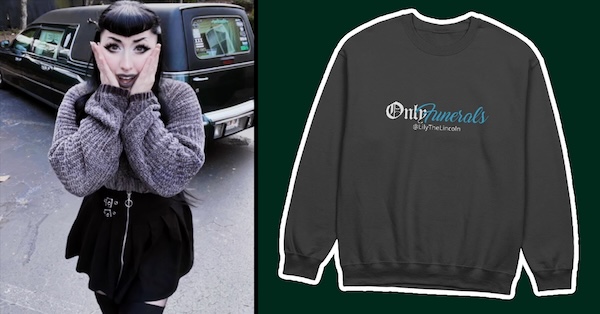 Meet Lily. No, not the dark-haired woman in the sweater…behind her. That is a 1999 Lincoln Town Car hearse named Lily, and ‘Lily the Lincoln’ has her own thriving OnlyFanspage. Click the link if you don’t believe me. But don’t get it twisted, this is Lily’s page.