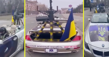 Ukraine BMW gun-vehicle with “Russia, F-CK yourself” bumper sticker (Video)