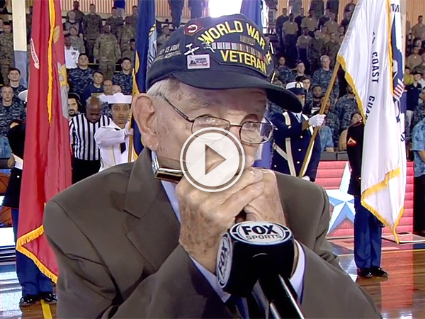 WW2 veteran gives one of the best national anthems on his harmonica (Video)