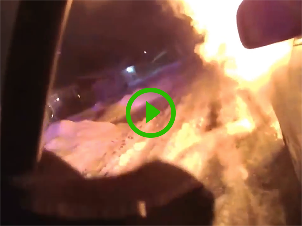 Heroic police officer pulls woman from burning car (Video)