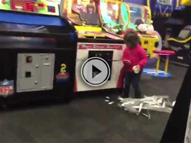 Little girl jacks tickets from Chuck E. Cheese (Video)