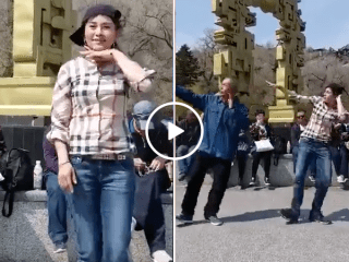 Awesome old man joins in dance effortlessly (Video)