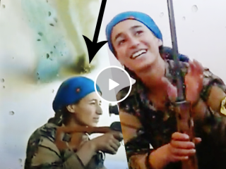 Young girl laughs after almost losing her head while battling ISIS (Video)