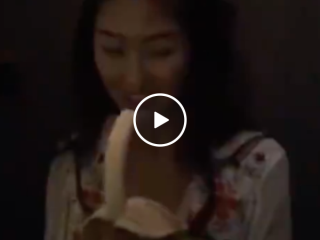 Cute asian girl forgets to chew her banana (Video)