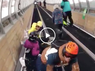 Massive fail on the ski lift is an orgy of skis and poles (Video)
