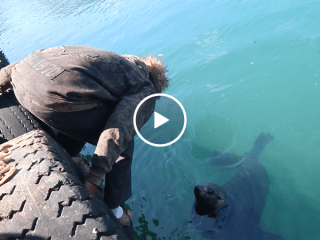 Feeding a seal by mouth (Video)