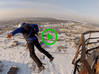 Base jumping from an industrial tower is as insane as it sounds (Video)
