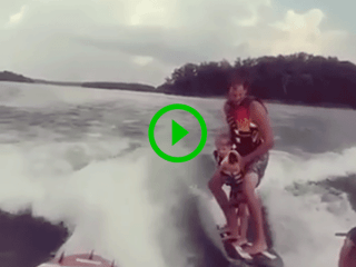 Dad takes his son wake surfing (Video)