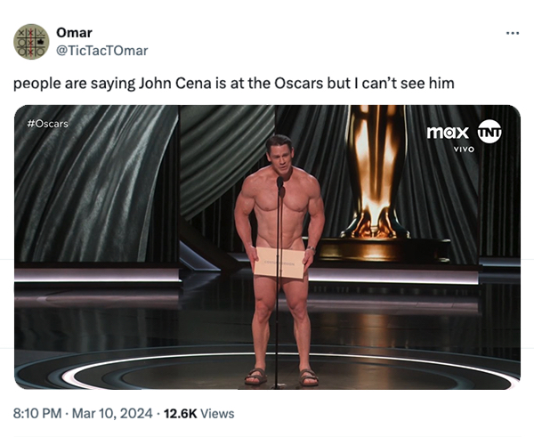 › Celebrity › Entertainment, Movies And the best Tweets from the Oscars go to… (35 Photos) Stephen Mar 11, 2024 Add Favorite 1971 65 0 1 The 2024 Oscars were on last night and, well, you probably didn’t see it. But that’s okay because these Tweets and reactions are the only memorable parts of the show anyway. So without furder ado, here is your feature presentation.