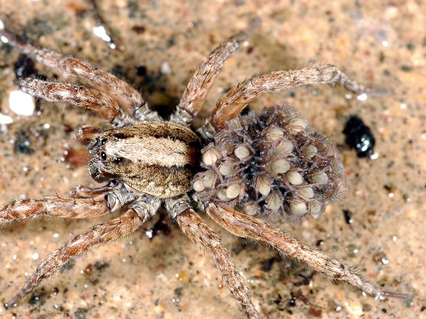 These sketch basts are from the family Lycosidae, from the Ancient Greek word for wolf. These guys like to hunt alone, and rely on their camouflage ability to keep them hidden from potential prey. They’ve been known to run short distances when chasing and killing their prey, which is reason enough for this spider to be thrown into the ‘nope’ category.