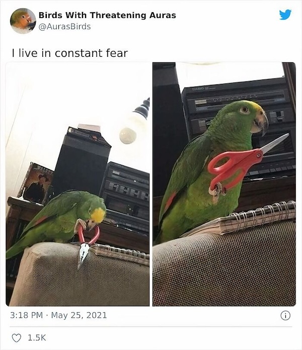 humor 3223 Liked! 7 Disliked 0 Birds with a borderline threatening aura have us on our heels (30 Photos) by: Jacob In: Animals, Humor, Meme Jul 19, 2024 3223 Liked! 7 Disliked 0 1 Via Birds with threatening auras on FB Like this post? 3223 Liked! 7 Disliked 0