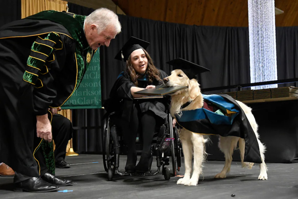 Service dog receives an honorary diploma.