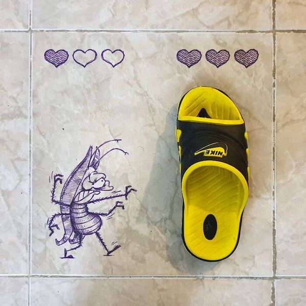 Artist weaves real everyday objects into their drawings with clever results (28 Photos)