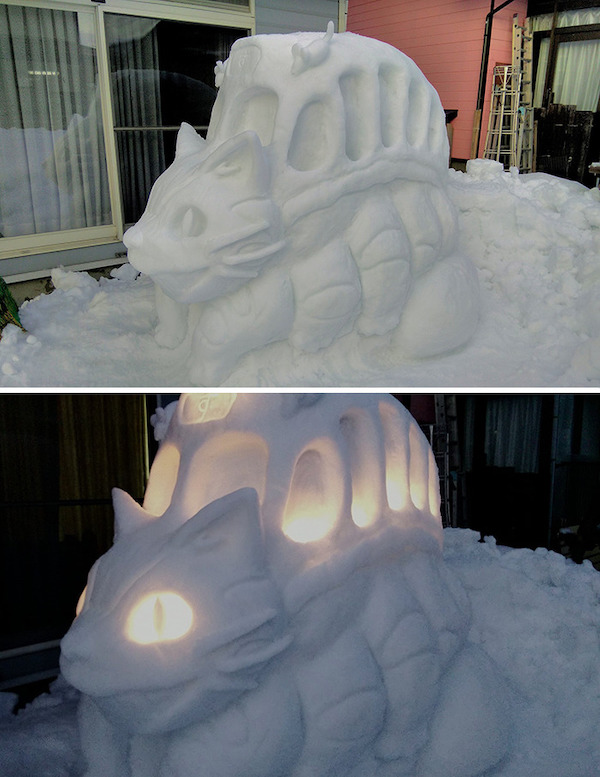 One thing that I have missed since I moved here to Texas is a snowy wintertime. There is just something that is peaceful and calming of a fresh blanket of snow in the dead silence of morning. I will admit though that I cannot make a snowman to save my life. Think frosty mixed with Sloth from The Goonies. It is not pretty. Now Twitter user @mokomoko_2015 on the other hand is an absolute artist! Not only does he create some incredible sculptures, but he even includes light in some of them to really make them stand out. Here are some of his coolest works from twitter.