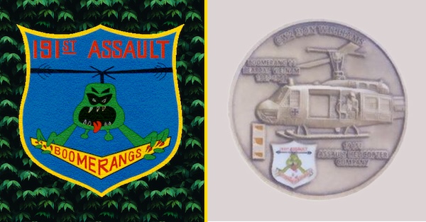 “I designed the coin shown above to commemorate my two tours in Vietnam. Ranger Coin Company did an excellent job of manufacturing the coin. One side represents my first one-year tour in Vietnam during 1967-68. I was a Chief Warrant Officer 2 flying a UH-1D Huey with the 191st Assault Helicopter Company.”