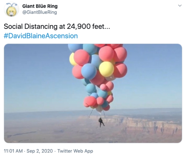 Earlier this week, David Blaine took to the sky in a spectacular event called David Blaine Ascension. Of course, seeing a man fly away with the help of a few dozen balloons had people talking on Twitter, and here are some of the best reactions.