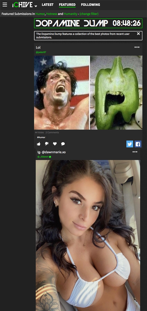 Before sharing some great news, a little history lesson first. For years editors were able to sift through a large submission box of Chivers’ original content, however only the editors were able to view this content. Chive Nation was in the blind, and so finally we created a way for the community to be active participants in the process. Those with iChive accounts can now share content that makes the homepage, and the community can vote and comment on their favorite content.