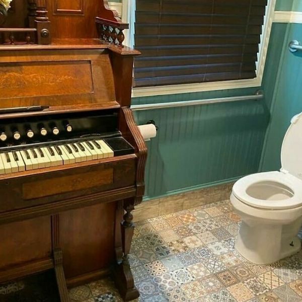 Well, damn near everything on the Instagram account What the Crazy House is absolutely gonzo stuff in real houses. Though, a couple of these style choices aren’t completely deranged (but this bathroom definitely is).
