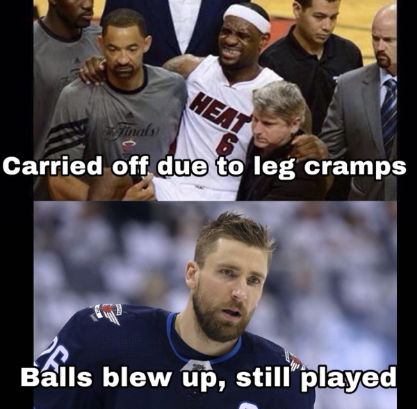 With everything going on in the NHL right now, the story making its rounds this week is actually from a game in mid-December, when Winnipeg Jets forward Blake Wheeler ruptured one of his testicles (yes, you read that right) after being inadvertently struck by a shot from his teammate Josh Morrissey. AND HE FINISHED THE GAME!