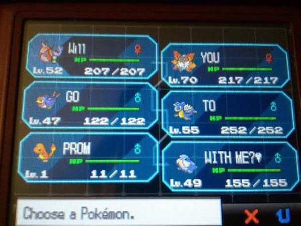 “I asked my friend to prom my junior year by reprogramming Super Mario Bros! I brought my 3DS to school and pretended I couldn’t beat a level. I asked him for his help beating it, and when he finished, instead of “your princess is in another castle” it said “will you go to prom with me!”.”