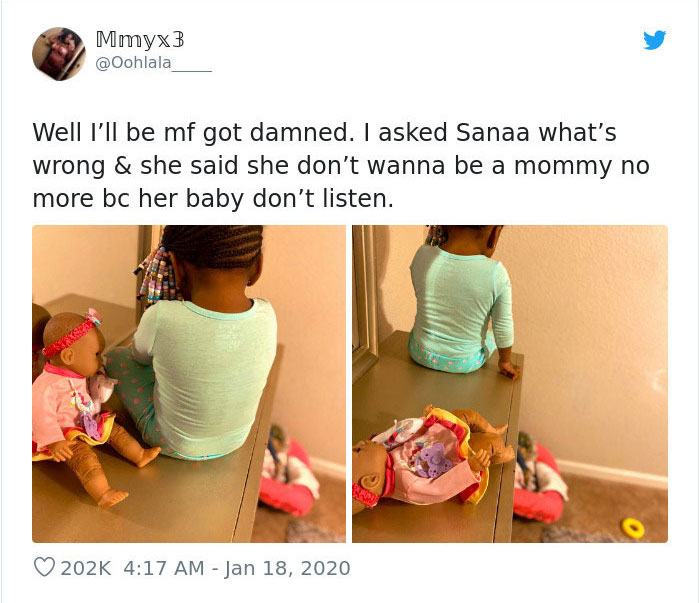 humor 0 Liked! 0 Disliked 0 Parenting isn’t the easiest to master, says these tweets (38 Photos) by: Sebastian In: Genius or Stupid, Humor, Owned Jan 21, 2020 0 Liked! 0 Disliked 0 1 Nobody is ever prepared for what parenthood entails. Rick reminds me on a daily basis not to have kids, which I don’t plan on having. From the sound of it, a lot of people agree. Like this post? 0 Liked! 0 Disliked 0