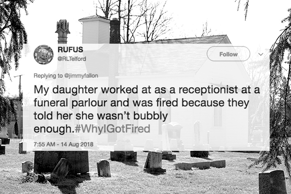 Jimmy Fallon started a thread #WhyIGotFired where people have been reliving their most horrifically strange, funny and humiliating reasons why they ever got fired. Suddenly, I’m feeling far less like a complete trainwreck than I previously assumed.