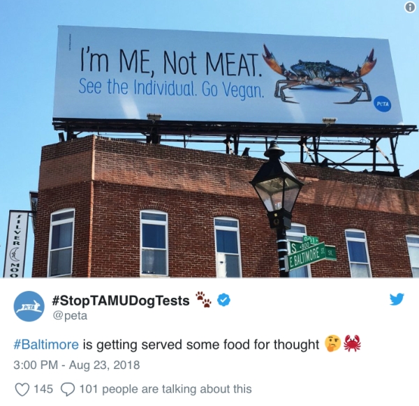 When PETA took aim at Baltimore’s seafood scene with this billboard, they made like a Blue Crab fresh from the Chesapeake and got boiled alive.