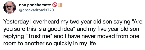 humor 0 Liked! 0 Disliked 0 Times parents caught their kids trying insane stunts bc…well…they’re kids (31 Photos and GIFs) by: Jacob In: Humor, Kids, parenting, Shit Happens, WTF Mar 28, 2021 0 Liked! 0 Disliked 0 1 Like this post? 0 Liked! 0 Disliked 0
