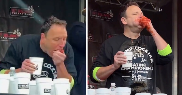 Indiana steakhouse, St Elmo’s is known for their seafood scramble; the Shrimp Cocktail Eating Contest.