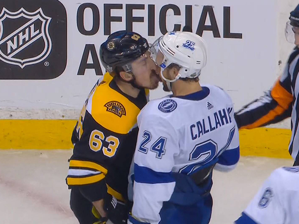 Boston Bruins forward and perpetual league pest Brad Marchand was up to his old tricks again on Friday. Following a scrum in Game 4 against the Tampa Bay Lightning, Marchand got into it with Lightning forward Ryan Callahan, and after taking a few punches, he decided the perfect retaliation would be a nice juicy LICK… right across the guy’s face… cause that’s normal right?