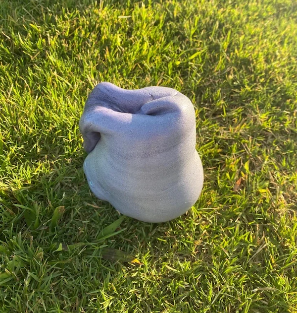 “What is this bubbling out of the ground in my yard? Purplish metallic gooey inside.”