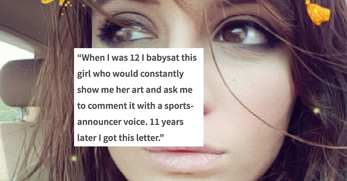 She encouraged a girl she babysat, 11 years later she got this letter by: Staff Jul 22, 2017 07/22/17 0 Liked! 0 Disliked 0 humanity