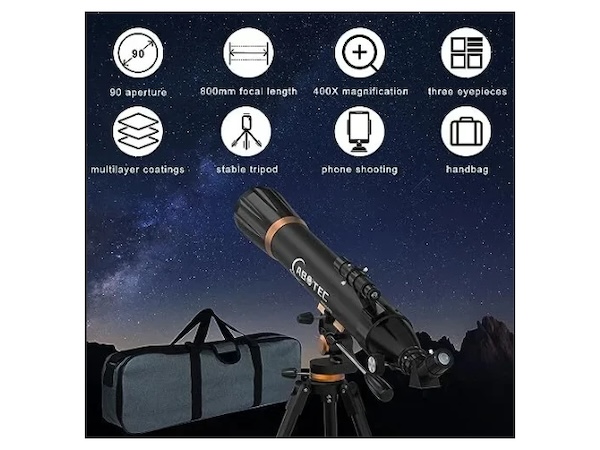 ABOTEC 80090 Telescope, 90mm Aperture, 800mm Refractor 32x – 400x (New – Open Box)