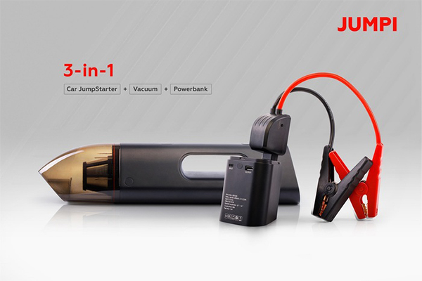Does your car ever get dirty? Ever go on road trips? Ever have a dead battery? Meet Jumpi: the 3-in-1 Car Jumpstarter, Vacuum & Powerbank. Jumpi is a multi-functional car companion that allows you to be ready for anything that the road throws your way. It’s small and lightweight (less than 2 pounds) and doesn’t take up much space; but is an absolute life-saver when an emergency strikes. Dead car battery? No problem. With Jumpi, you’ll have the power to safely jump your battery in seconds – without another car. Made a mess in your car? No problem. Jumpi’s powerful vacuum will make cleaning up a breeze. Need to charge your laptop? No problem. Jumpi’s built-in power bank can take care of that! Here’s why you should keep Jumpi it in your car: